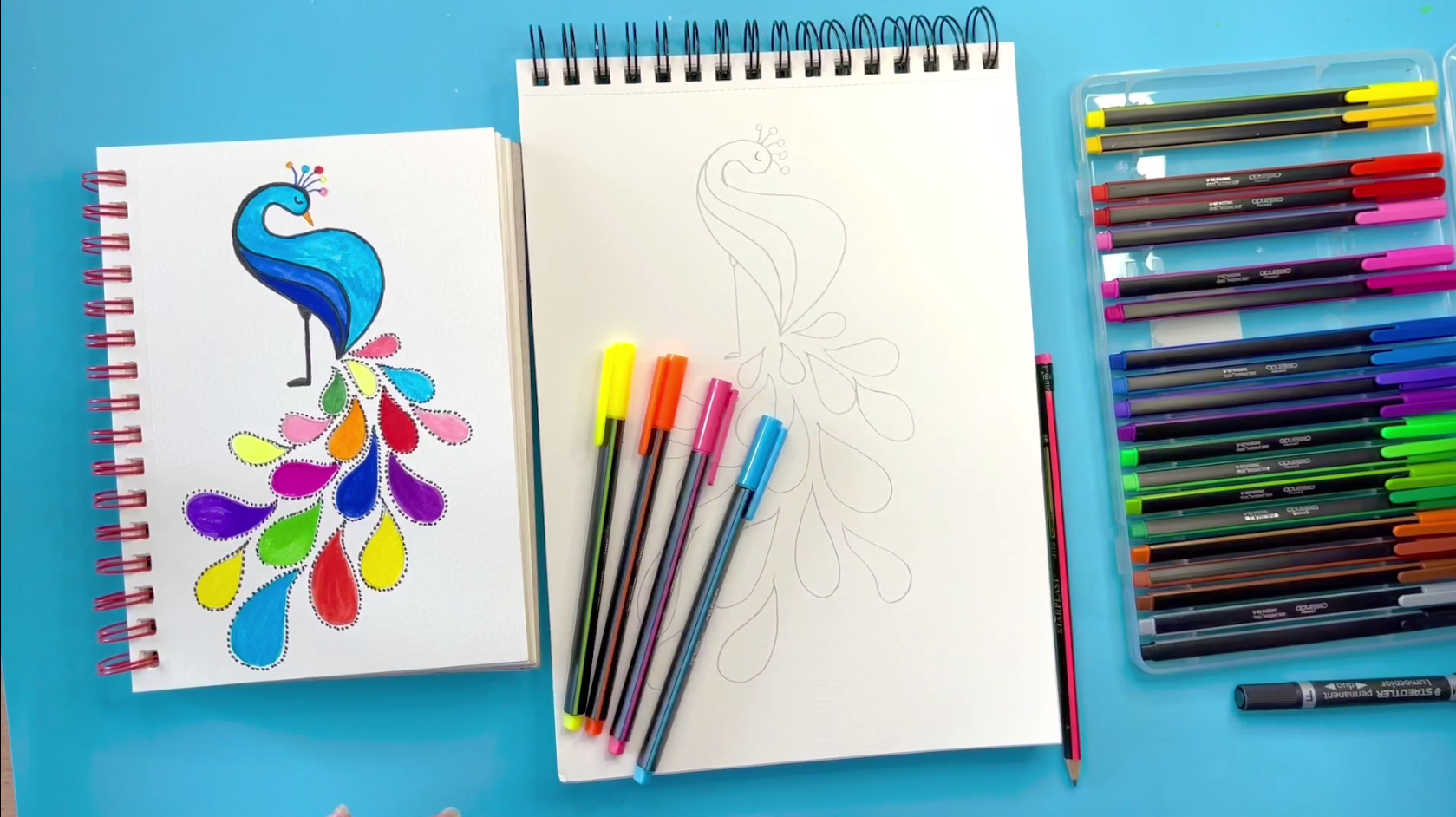 En la clase de hoy solo vas a necesitar lápiz y rotuladores. Vamos a aprender a dibujar un pavo real con sus plumas de colores.